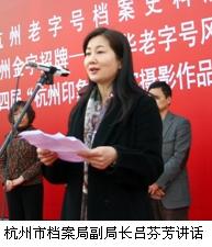 • 2010年12月28日,《杭州老字号档案史料展》开幕式、《杭州金字招牌——中华老字号风采》首发式暨《第四届“杭州印象”纪实摄影作品比赛》颁奖仪式在杭州市档案馆隆重举行。仪式由市档案局局长郎健华主持。中国财政博物馆馆长、浙江省财政厅原厅长翁礼华、市政府副秘书长、办公厅主任许保水、省政协文史委专职副主任曾骅、浙江省暨杭州市老字号企业协会秘书长丁惠敏、浙江省暨杭州市摄影家协会主席吴宗其、市档案局副局长吕芬芳、市贸易局政策法规处副处长俞洪巍等出席了仪式。参加仪式的还有各区、县(市)档案局(馆)负责人,市直属各单位有关负责人,杭州老字号企业代表,第四届“杭州印象”摄影比赛参赛代表、杭州市老摄影家联谊会成员,沁园社区、下城交警支队代表以及关心和支持档案工作的社会各界代表、市民代表共400多人。