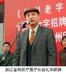 翁礼华馆长在开幕式上作了热情洋溢的致辞。他说,老字号及老字号档案是我们的共同关注。杭州有众多的老字号,每个老字号都有其独特的发展历史。它们是杭州城市发展和社会进步的一个缩影,体现了杭州这座历史文化名城巨大的物质财富和精神财富。他希望市档案局以及其他档案行政管理部门,进一步加强对老字号档案的管理工作,继续挖掘和开发利用老号字档案信息资源,更好地为企业发展服务,为杭州市的经济建设、文化建设服务。