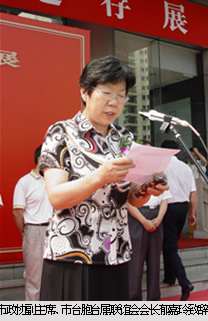开幕式上,郁嘉玲副主席作了热情洋溢的致辞,她说,台湾自古就是中国的一部分,《台湾历史文化遗存展》是用历史事实向世人表明我们发展两岸关系、维护祖国统一的坚定决心。“浅浅的海峡,国之大殇,乡之深愁!”两岸同胞同根同祖同命运,我们两岸的同胞要携起手来,团结奋斗,共同谱写出中华民族伟大复兴的壮丽诗篇。郁嘉玲、赵光育、王茂法、陈建伟、冯少平等领导还为本次展览剪彩。随后,出席开幕式的领导和代表们一起参观了展览,郁嘉玲等领导还为展览题了词。